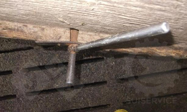 Sans entrer dans de longues descriptions, les photos parlent d'elles-mêmes : d'un côté du panneau, il y a un support métallique qui repose sur les parois latérales et sur lequel une tige filetée est soudée ; de l'autre côté, il y a un boulon avec une poignée qui permet de maintenir fermement le panneau contre le mur.