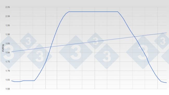 Évolution du prix du porc sur le marché de Mercolleida (Espagne).
