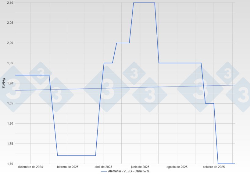 Octobre a secoué le marché porcin allemand, qui a finalement trouvé une fragile stabilité à un niveau plus bas. Au début du mois, le prix se maintenait à 1,85 €/kg, soutenu par les attentes d’un équilibre entre l’offre et la demande. Cependant, le climat a changé soudainement : en quelques jours, les prix ont chuté à 1,70 €/kg, marquant une rupture brutale du marché. Les causes principales ont été l’accumulation de porcs prêts à l’abattage après le jour férié national, une demande modérée de la part des abattoirs et la pression exercée par l’environnement européen. Les grands transformateurs ont souligné la réduction de leurs marges et l’affaiblissement de la structure des prix intérieurs. Cette combinaison d'une offre excédentaire et d'une demande atone a déclenché la correction des prix.