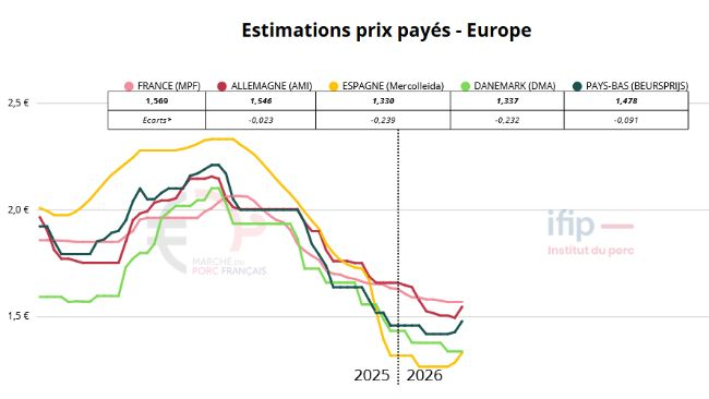 En Espagne, la peste porcine africaine continue de progresser chez les sangliers, avec 33 nouveaux cas confirmés, ce qui maintient un niveau de vigilance élevé sur le terrain. Sur le marché, l’offre de porcs diminue et les poids à l’abattage reculent. Malgré des marges encore correctes pour les abattoirs, la rétention des ventes par les éleveurs exerce une pression haussière sur les prix.