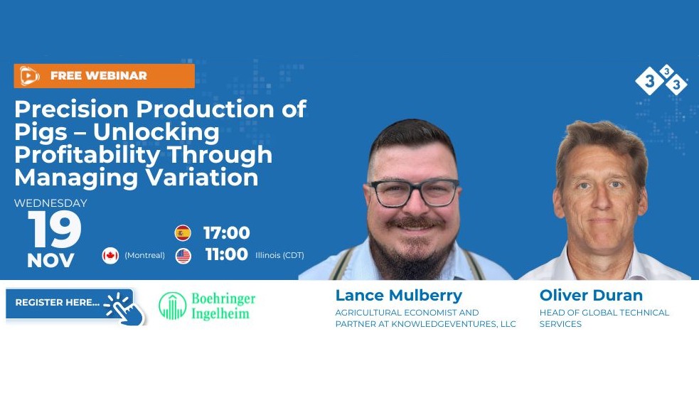 In today's swine industry, precision and profitability go hand in hand. Join this free webinar with Dr. Oliver Duran, Head of Global Technical Services at Boehringer Ingelheim, and Lance Mulberry, agricultural economist and partner at KnowledgeVentures, LLC, renowned for his expertise in bio-economic modeling and AI forecasting in swine production.