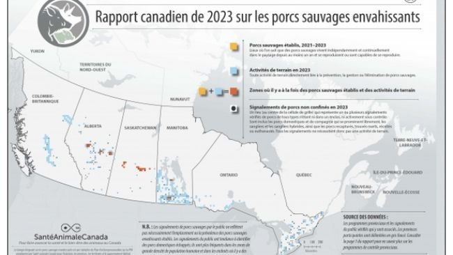 Le rapport cartographie la présence des sangliers et les activités provinciales de prévention, de gestion et d’éradication.